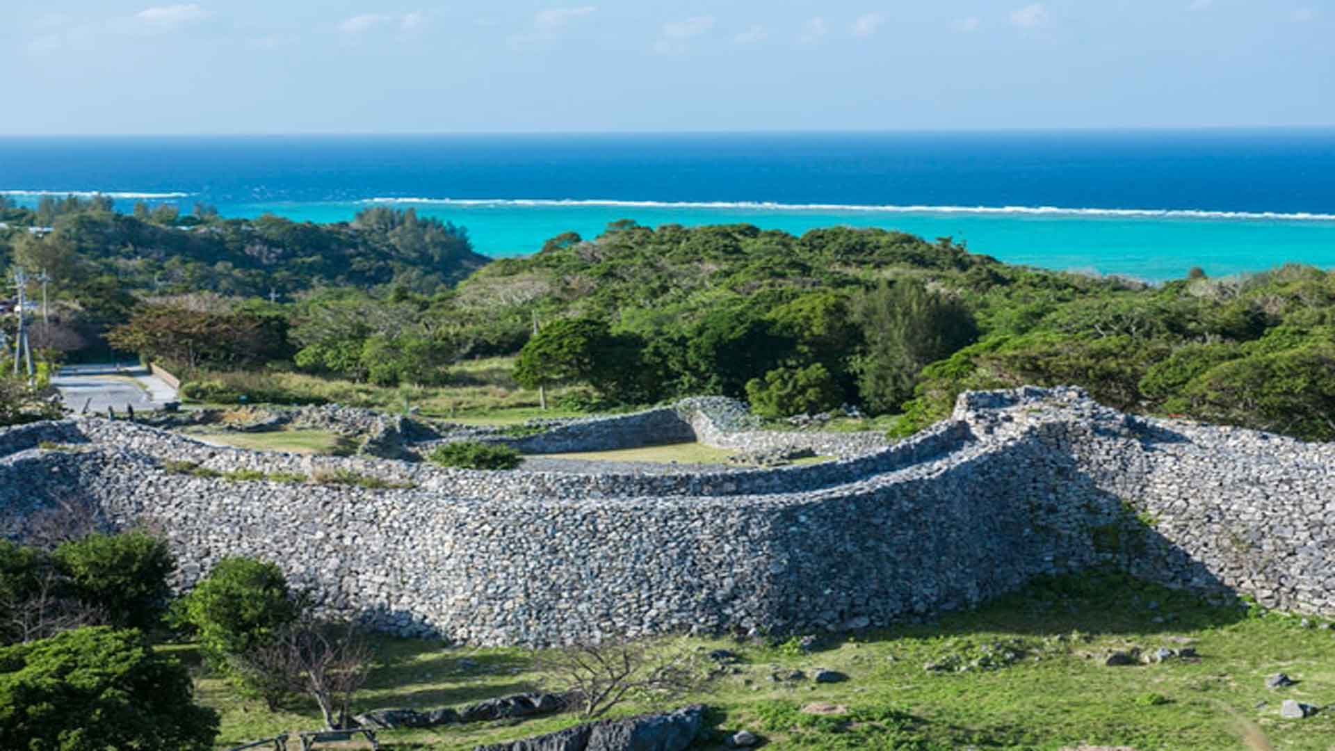Les ruines du château de Nakijin (今帰仁城跡, Nakijinjōato) sont situées sur la péninsule de Motobu au nord d’Okinawa Honto et font partie des châteaux du royaume Ryukyu classés au patrimoine mondial de l’UNESCO. Contrairement aux autres châteaux d’Okinawa, le château de Nakijin se trouve dans une zone à faible densité de population avec des forêts luxuriantes, qui confèrent aux ruines une atmosphère unique. Le château de Nakijin a été construit à la fin des années 1200. Durant la période Sanzan (1322-1429), Okinawa Honto était divisé en trois royaumes : le Hokuzan au nord, le Chuzan au milieu et le Nanzan au sud. Nakijin a servi de château au roi Hokuzan jusqu’à ce qu’il soit repris par les Chuzan en route pour unifier l’île et former le royaume Ryukyu.